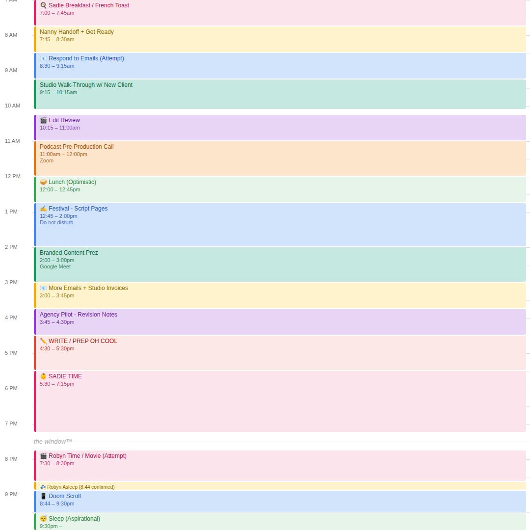 Stop doing the hard work of scheduling. Stop worrying if you can fit it in. With The Window, you’ll realize… you can't. You'll be at work, or at home, or at home working, or at work online shopping for the rest of your life!